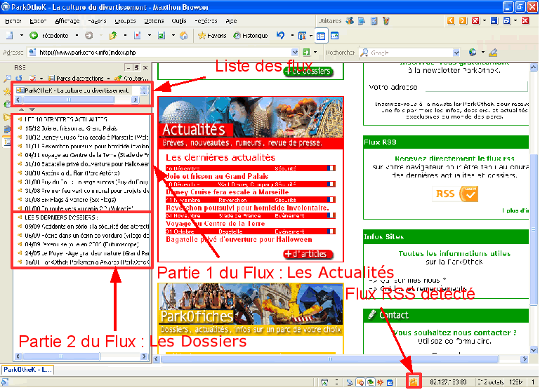 - Soit vous disposez d'un navigateur qui est capable d'interpréter le flux (ex : Maxthon), et dans ce cas aucun problème ne se pose. Il ne vous reste plus qu'a consulter l'aide relative à votre navigateur pour le faire fonctionner correctement.